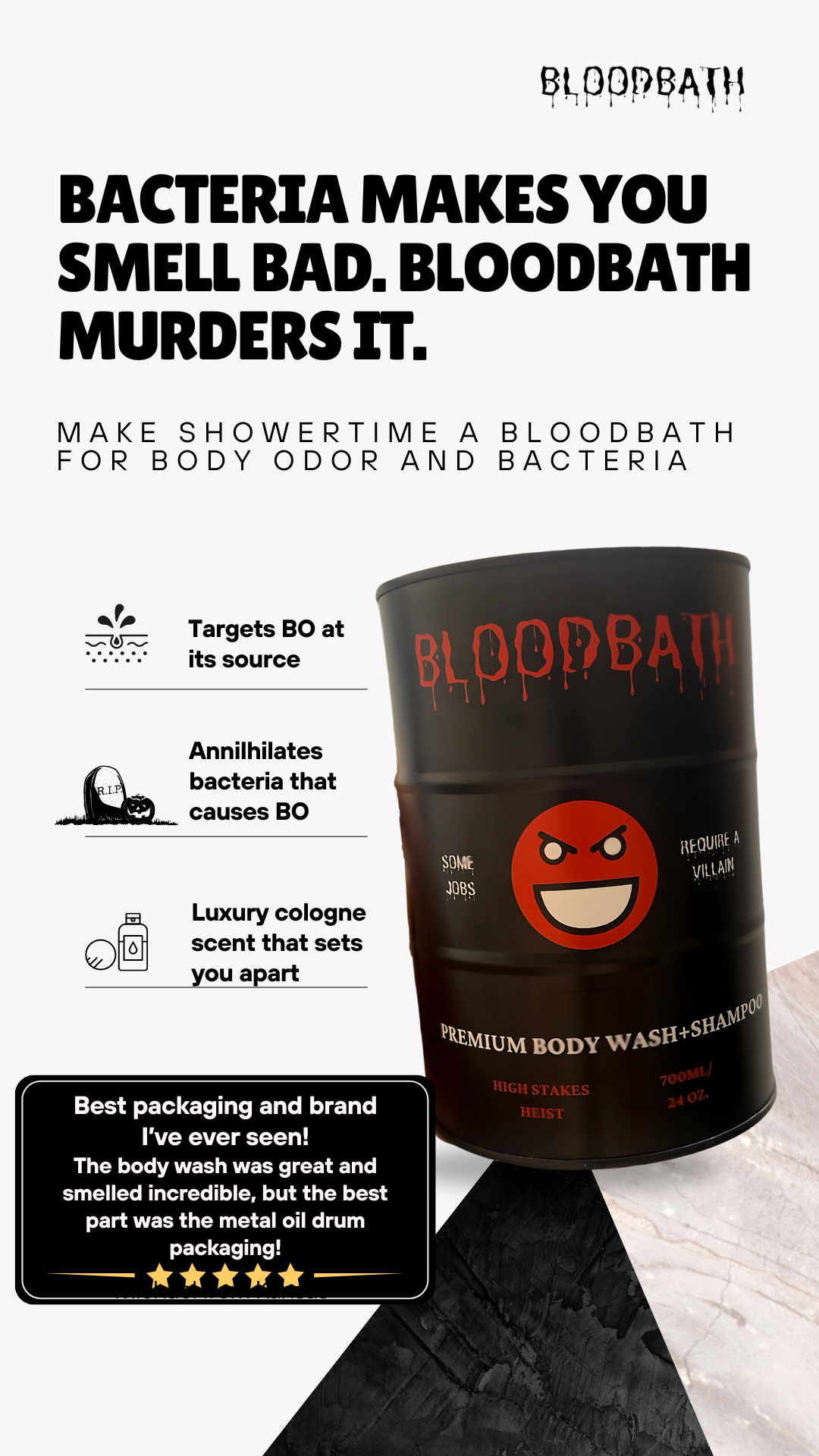 Bloodbath was born out of necessity to cure Body odor and a desire to make body wash more sustainable.
